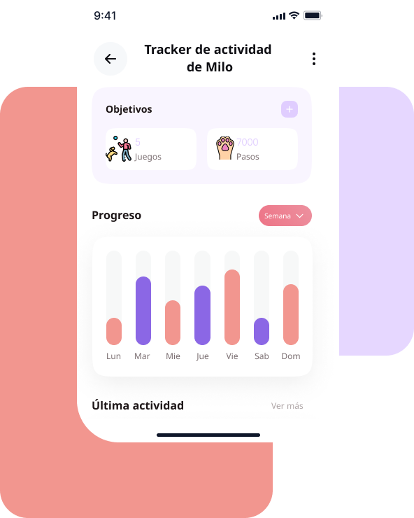 Monitoreá el nivel de actividad de tu mascota para identificar cambios en su rutina diaria.